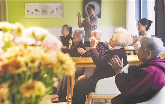 10月31日,居住在東城區(qū)銀杏舍養(yǎng)老服務(wù)中心的老人在學(xué)習(xí)健身操。