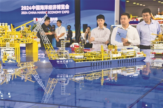 10月31日,觀眾在2024中國海洋經(jīng)濟博覽會中國海油展臺參觀。