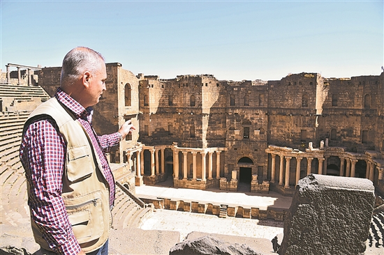 作為歷史上的戰(zhàn)略要地以及沙漠商隊(duì)和信徒朝覲的重要中轉(zhuǎn)站,敘利亞的布斯拉古城被鐫刻上不同文明的印記,是敘利亞的文化瑰寶,1980年被列入《世界遺產(chǎn)名錄》。然而,經(jīng)歷13年的敘利亞內(nèi)戰(zhàn),布斯拉古城的一些歷史遺跡被炸毀,部分文物被盜。游客對周邊安全形勢的擔(dān)憂嚴(yán)重影響了當(dāng)?shù)芈糜螛I(yè)的發(fā)展。這導(dǎo)致小鎮(zhèn)居民失去了重要的收入來源,文物工作者大量流失。圖為近日,在敘利亞德拉省布斯拉鎮(zhèn),布斯拉古城遺址管理部門負(fù)責(zé)人阿拉·薩拉赫介紹情況。