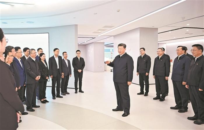 5日下午,習(xí)近平到武漢產(chǎn)業(yè)創(chuàng)新發(fā)展研究院考察,觀看科技創(chuàng)新供應(yīng)鏈平臺(tái)成功案例展示和科技創(chuàng)新成果,了解推進(jìn)科技創(chuàng)新的舉措,同科研人員和企業(yè)負(fù)責(zé)人深入探討交流。他強(qiáng)調(diào),實(shí)現(xiàn)高水平科技自立自強(qiáng)、發(fā)展新質(zhì)生產(chǎn)力,對(duì)科技創(chuàng)新和產(chǎn)業(yè)創(chuàng)新融合提出了更為迫切的需求。廣大科技工作者和企業(yè)家要增強(qiáng)自信、志存高遠(yuǎn)、協(xié)同發(fā)力,在提升創(chuàng)新體系整體效能、建設(shè)現(xiàn)代化產(chǎn)業(yè)體系中不斷建功立業(yè)。