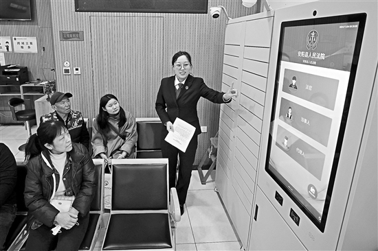 11月4日,河南省安陽縣人民法院訴訟服務大廳干警向群眾宣講“智能云柜”的功能和使用方法,提供便民訴訟服務。本報通訊員 黃憲偉 攝