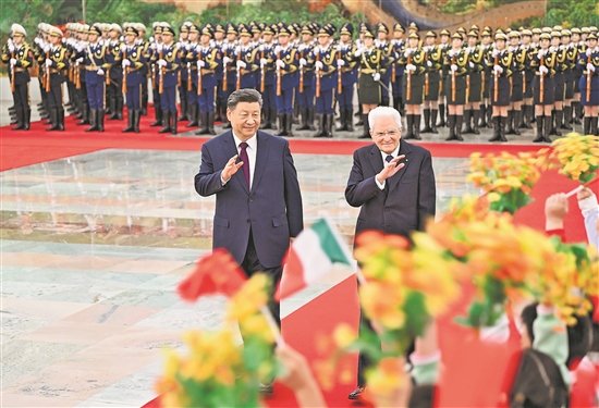 習(xí)近平指出,今年是中意建立全面戰(zhàn)略伙伴關(guān)系20周年。雙方發(fā)表了加強(qiáng)全面戰(zhàn)略伙伴關(guān)系的行動(dòng)計(jì)劃,一致同意秉持歷史悠久的絲路精神,推動(dòng)雙邊關(guān)系進(jìn)入發(fā)展新階段。當(dāng)今世界正在經(jīng)歷百年未有之大變局,中國(guó)和意大利作為兩大文明古國(guó),應(yīng)該弘揚(yáng)開放包容、兼容并蓄的傳統(tǒng),推動(dòng)國(guó)際社會(huì)以對(duì)話化解分歧、以合作超越?jīng)_突,攜手構(gòu)建和合共生的美好世界。
