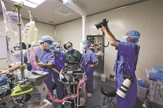 7月9日,在四川省甘孜藏族自治州人民醫(yī)院,北京青年報記者崔峻拍攝首都醫(yī)療專家為藏族兒童做先心病手術(shù)。沈伯韓 攝