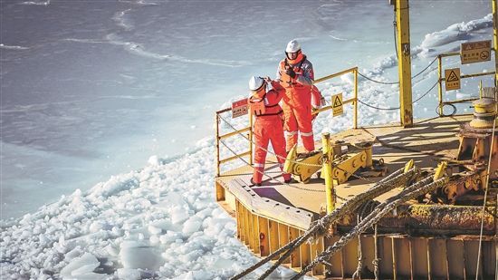 2023年12月,寒潮席卷華北地區(qū),中國海洋石油報記者小隊在零下20攝氏度的寒風中采訪海洋石油工人。費振宇 攝