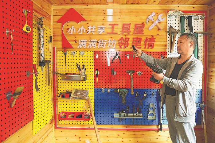 11月11日,江蘇省連云港市連云區(qū)墟溝街道桃園社區(qū)一座“共享工具屋”建成投用?!肮蚕砉ぞ呶荨币陨鐓^(qū)采購、群眾捐贈(zèng)等方式籌集物品,現(xiàn)已征集電鋸、電鉆、螺絲刀、折疊梯等維修工具50余件,供居民免費(fèi)共享使用,提高閑置物品利用率。本報(bào)通訊員 朱華南 李倩倩 攝