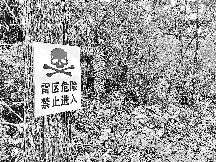 在海拔1422米的老山山巔,山坡草叢中,有一座座水泥警示碑,碑上是“雷區(qū)危險(xiǎn) 禁止進(jìn)入”8個(gè)粗體紅字。