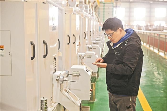 在位于射陽縣的江蘇必新大米集團(tuán),工人在檢查機(jī)器碾米情況。作為“餐桌上的長三角一體化”重要保障者,射陽積極推動(dòng)農(nóng)業(yè)產(chǎn)業(yè)與上海深度融合接軌、實(shí)現(xiàn)跨越轉(zhuǎn)型,打造上海等長三角地區(qū)優(yōu)質(zhì)農(nóng)產(chǎn)品供應(yīng)基地,采用“互聯(lián)網(wǎng)+”模式,和大型超市、優(yōu)質(zhì)電商平臺(tái)合作。據(jù)介紹,近年年均有50多萬噸優(yōu)質(zhì)射陽大米銷往上海。新華社記者 季春鵬 攝
