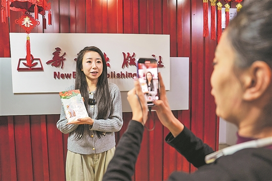 董璐是天津出版?zhèn)髅郊瘓F新蕾出版社的一名圖書主播,張荃作為直播中控,負責引導主播、在直播過程中與觀眾互動。今年“雙十一”期間,兩人用“捧哏兒與逗哏兒”般的配合,一場近3小時的直播觀看量超萬人次,銷售額也十分可觀。董璐說:“作為一名‘Z世代’(一般指出生于1995年至2009年、深受互聯(lián)網(wǎng)等影響的年輕人)圖書類網(wǎng)絡(luò)主播,真誠告訴家長如何選擇好書,這才是直播的目的?!毙氯A社記者 孫凡越 攝