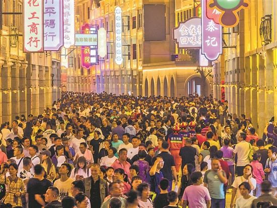 近日,廣西梧州,萬秀區(qū)百年騎樓城燈火璀璨、景色迷人,游人如織。2024年廣西文化旅游發(fā)展大會期間,各地游客來到百年騎樓城賞夜景、拍照打卡、購物、品嶺南美食、看粵劇表演,璀璨的騎樓夜景讓人流連忘返。