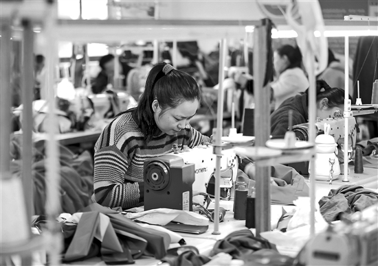 近日,在貴州省黔西市錦繡街道錦繡社區(qū),致富車間的職工正在趕制服裝訂單。近年來(lái),廣東省廣州市花都區(qū)、增城區(qū)與貴州省黔西市通過(guò)東西部協(xié)作,因地制宜建設(shè)致富車間,確保搬遷群眾家門(mén)口實(shí)現(xiàn)就業(yè)增收。本報(bào)通訊員 陳穎 攝