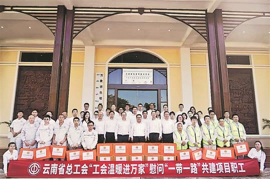 云南工會(huì)的“暖邊固防”行動(dòng)涉及關(guān)愛的職工目前多達(dá)約41萬人,關(guān)愛參與“一帶一路”建設(shè)的職工,是“暖邊固防”的重要內(nèi)容。圖為省總工會(huì)深入老撾萬象慰問“一帶一路”共建項(xiàng)目職工。