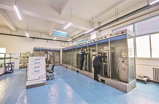 電茶爐是鐵路客車服務旅客的主要設施,過去中國鐵路太原局集團有限公司太原車輛段的電茶爐從車上拆卸下來直接放地上進行檢修,既不衛(wèi)生又不安全。如今14個檢修臺位整齊排列,電茶爐全部實現(xiàn)不落地檢修,并實行崗位定置管理,大大提高了檢修效率,也為職工提供了安全保障。圖為11月14日,該段檢修工在檢修電茶爐。張晉彤 攝