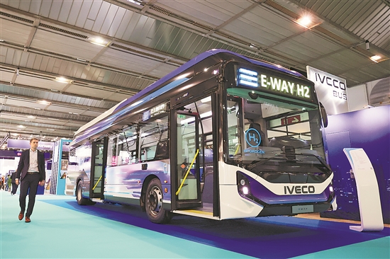 第五屆歐洲氫能周日前在比利時首都布魯塞爾開幕,聚焦氫能產(chǎn)業(yè)創(chuàng)新應(yīng)用、監(jiān)管政策簡化以及增強歐盟氫能產(chǎn)業(yè)競爭力等議題。圖為近日在比利時布魯塞爾的歐洲氫能周展會現(xiàn)場拍攝的氫能大巴。 新華社記者 趙丁喆 攝