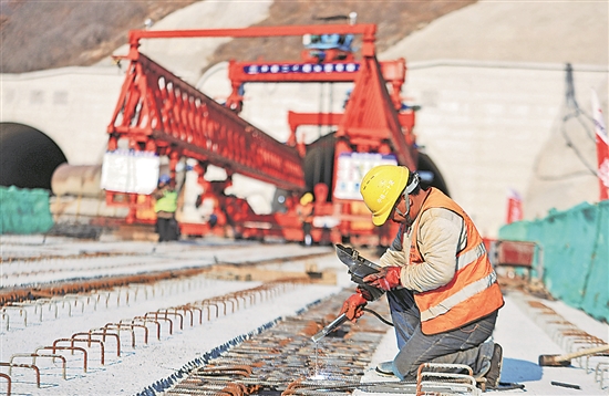 11月19日,工人在橋梁上進行焊接作業(yè)。