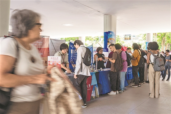 近日,人們在巴西里約熱內(nèi)盧聯(lián)邦大學舉辦的中國高等教育展上參觀。新華社記者 王天聰 攝