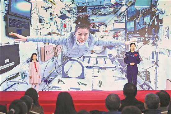 11月28日,航天員王亞平與女兒在開(kāi)幕式上共同演繹“摘星星的媽媽”。