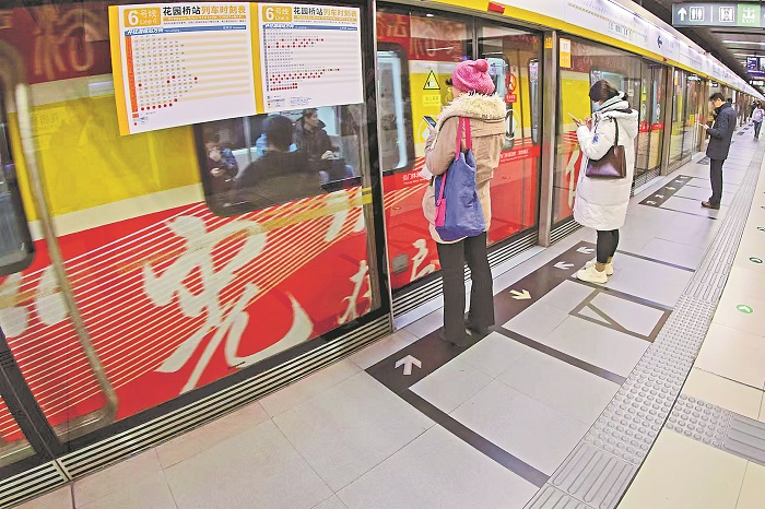 11月28日晚高峰期間,運(yùn)行中的北京市憲法宣傳地鐵列車。