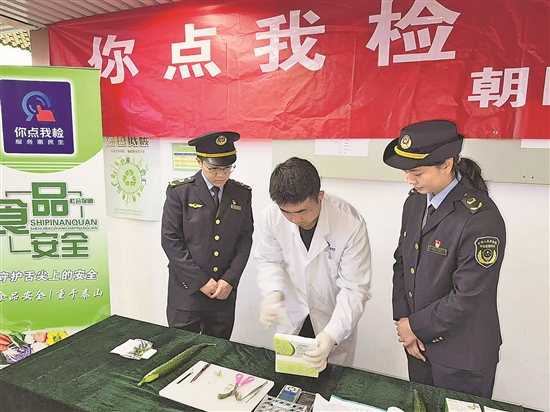 今年以來,朝陽區(qū)已開展食品安全“你點我檢”進商超、進市場、進學校、進社區(qū)等8次活動,抽取各類食品55批次。