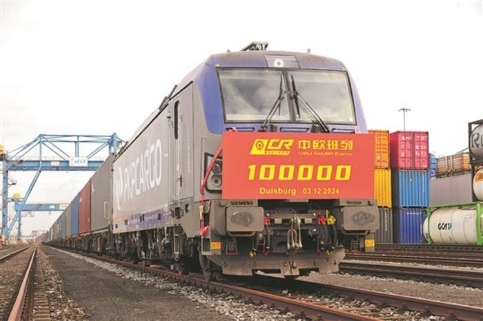 日前,從中國(guó)重慶團(tuán)結(jié)村中心站開(kāi)出的第10萬(wàn)列中歐班列X8083次,順利抵達(dá)德國(guó)杜伊斯堡。自2011年首列開(kāi)行以來(lái),中歐班列不斷跑出“加速度”,開(kāi)行萬(wàn)列所需時(shí)間從最初的90個(gè)月縮短至僅6個(gè)月。截至目前,中歐班列累計(jì)發(fā)送貨物超1100萬(wàn)標(biāo)箱,貨值突破4200億美元,覆蓋歐洲25個(gè)國(guó)家的227個(gè)城市以及亞洲11個(gè)國(guó)家的100多個(gè)城市。圖為近日在德國(guó)杜伊斯堡市DIT場(chǎng)站拍攝的第10萬(wàn)列中歐班列。