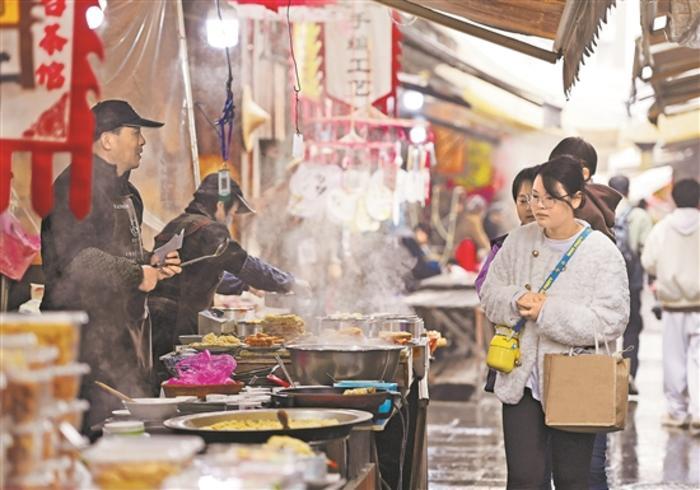 12月5日,浙江省蘭溪市游埠古鎮(zhèn),游客在早茶街游覽。