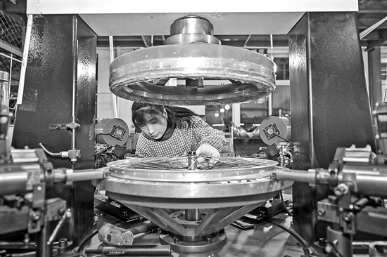 12月6日,在天津市武清區(qū)王慶坨鎮(zhèn)利雅得公司,工人在車間內(nèi)操作機器生產(chǎn)自行車零部件。
