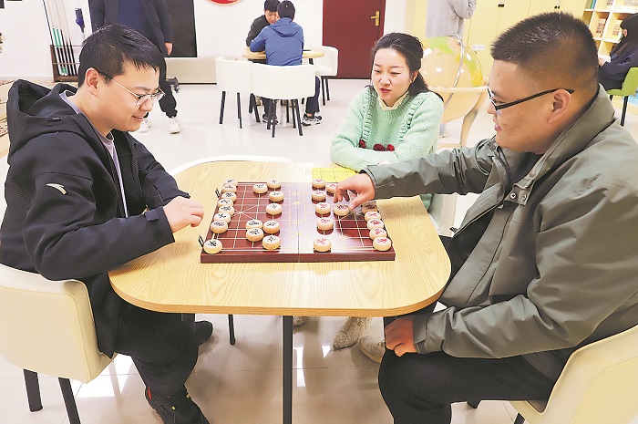 近日,中國鐵建大橋局電氣化公司工會精心打造的“方寸精神保障家園”,為職工準備了各類報刊書籍共計1000余本,同時配備棋牌、臺球等各類文體設施,為職工提供了強身健體的活動場所。圖為該企業(yè)職工在工作之余對弈放松。本報通訊員 曹慧 攝