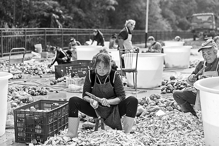 近日,浙江省衢州市常山縣新昌鄉(xiāng)“西源番薯”共富工坊種植的紅薯迎來(lái)豐收季。一顆顆紅薯擺滿田間地壟,村民忙著將剛挖出來(lái)的紅薯分揀、裝袋,田間地頭一派繁忙景象。今年,當(dāng)?shù)丶t薯產(chǎn)量20萬(wàn)千克,預(yù)計(jì)將為村集體帶來(lái)60萬(wàn)元的收益。本報(bào)通訊員 李君平 攝