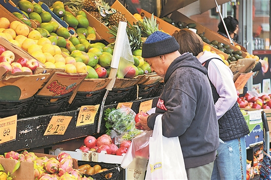 美國勞工部近日公布的數(shù)據(jù)顯示,11月美國消費者價格指數(shù)(CPI)環(huán)比增長0.3%,漲幅較10月擴大0.1個百分點。圖為12月11日,顧客在美國紐約一家超市挑選水果。