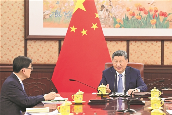 12月13日,國家主席習(xí)近平在中南海會見來京述職的香港特別行政區(qū)行政長官李家超。新華社記者 謝環(huán)馳 攝