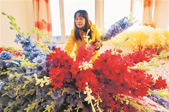 近年來(lái),河北省遵化市興旺寨鎮(zhèn)積極發(fā)展出口仿真花卉手工制作,讓大家居家綁扎、粘制仿真花卉,實(shí)現(xiàn)居家工作增收。