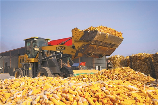 在黑龍江省肇東市一處秋糧晾曬場,一家農(nóng)機(jī)專業(yè)合作社的農(nóng)民駕駛農(nóng)機(jī)堆放玉米。國家統(tǒng)計(jì)局最新公布數(shù)據(jù)顯示,2024年,黑龍江省糧食總產(chǎn)量達(dá)到1600.34億斤。