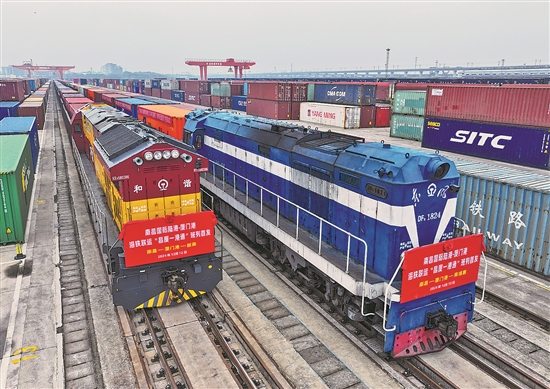 12月12日,兩列滿載著“江西制造”的鐵海聯(lián)運班列依次駛出南昌國際陸港,標志著南昌國際陸港至廈門港“昌廈一港通”鐵海聯(lián)運班列正式開行。