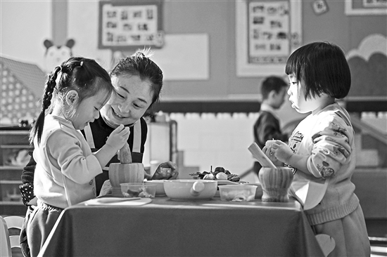近日,在青海省西寧市城中區(qū)一家托育中心,老師帶孩子們體驗勞動課。近年來,青海大力發(fā)展普惠托育服務(wù)供給,以公辦幼兒園向下延伸開辦托班、用人單位辦托、社區(qū)嵌入式托育等多種模式,提供方便可及的托育服務(wù)。目前,青海省托位總數(shù)已達2.45萬個。 新華社記者 張龍 攝