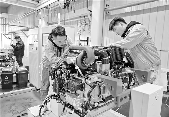 12月15日,工人在河北省遷安市一家氫燃料電池發(fā)動機企業(yè)的生產(chǎn)車間工作。