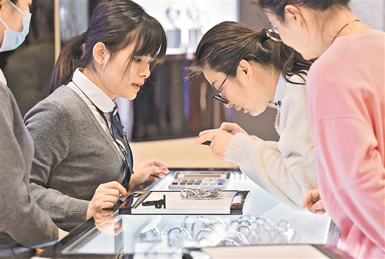 12月21日,顧客在海南省海口市日月廣場(chǎng)免稅店選購(gòu)手表。據(jù)??诤jP(guān)統(tǒng)計(jì),今年以來(lái),??诤jP(guān)“即購(gòu)即提”提貨方式免稅購(gòu)物總金額超30億元,150余萬(wàn)人次選擇以“即購(gòu)即提”方式提貨。新華社記者 郭程 攝