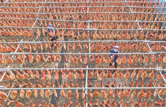當(dāng)前正是金華火腿生產(chǎn)銷售旺季,金華市各家生產(chǎn)企業(yè)加班加點忙著生產(chǎn)加工,通過電商平臺和客戶訂購,線上線下把金華火腿及火腿制品供應(yīng)到各地批發(fā)市場、特產(chǎn)店、年貨節(jié)等,滿足元旦、春節(jié)市場消費需求。