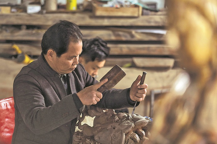 如何傳承與發(fā)展,是非物質(zhì)文化遺產(chǎn)面臨的最大問題。彭國龍說,要在創(chuàng)作時(shí)融入自己對(duì)儺文化的理解,結(jié)合萍鄉(xiāng)和其他地方儺面具的特點(diǎn),在繼承傳統(tǒng)的基礎(chǔ)上大膽創(chuàng)新。圖為近日彭國龍(左)、彭增協(xié)父子在自己的工作室雕刻儺面具。
