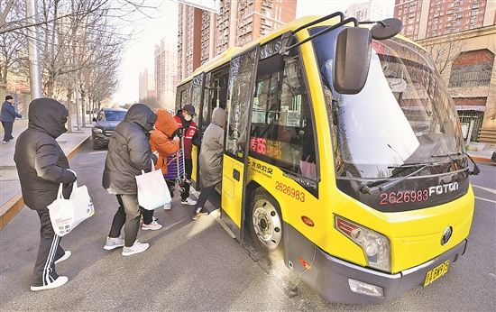 12月25日,北京市朝陽區(qū)高碑店鄉(xiāng)花園閘社區(qū)的居民乘坐便民小型公交車出行?;▓@閘社區(qū)北花園小區(qū)附近過去沒有公交、地鐵等交通站點(diǎn),居民出行極為不便。近日,高碑店鄉(xiāng)與交管部門、公交部門溝通協(xié)商后,開通了被居民稱為“溫暖小公交”的公交出行線路,配備了連通附近公交站點(diǎn)和地鐵站點(diǎn)的便民小型公交車,解決了居民出行“最后一公里”難題。