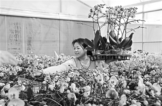 12月24日,在云南省玉溪市江川區(qū)亞洲花卉科創(chuàng)谷,一家花卉企業(yè)的員工在整理花卉。
