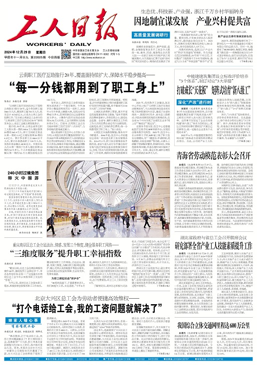 工人日?qǐng)?bào) 2024年12月29日 星期一
