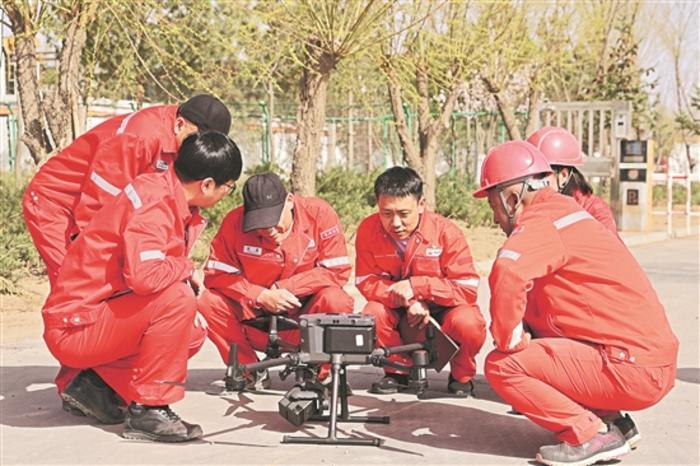 氣井巡護(hù)隊(duì)第一次用無人機(jī)巡檢。 邵帥 攝