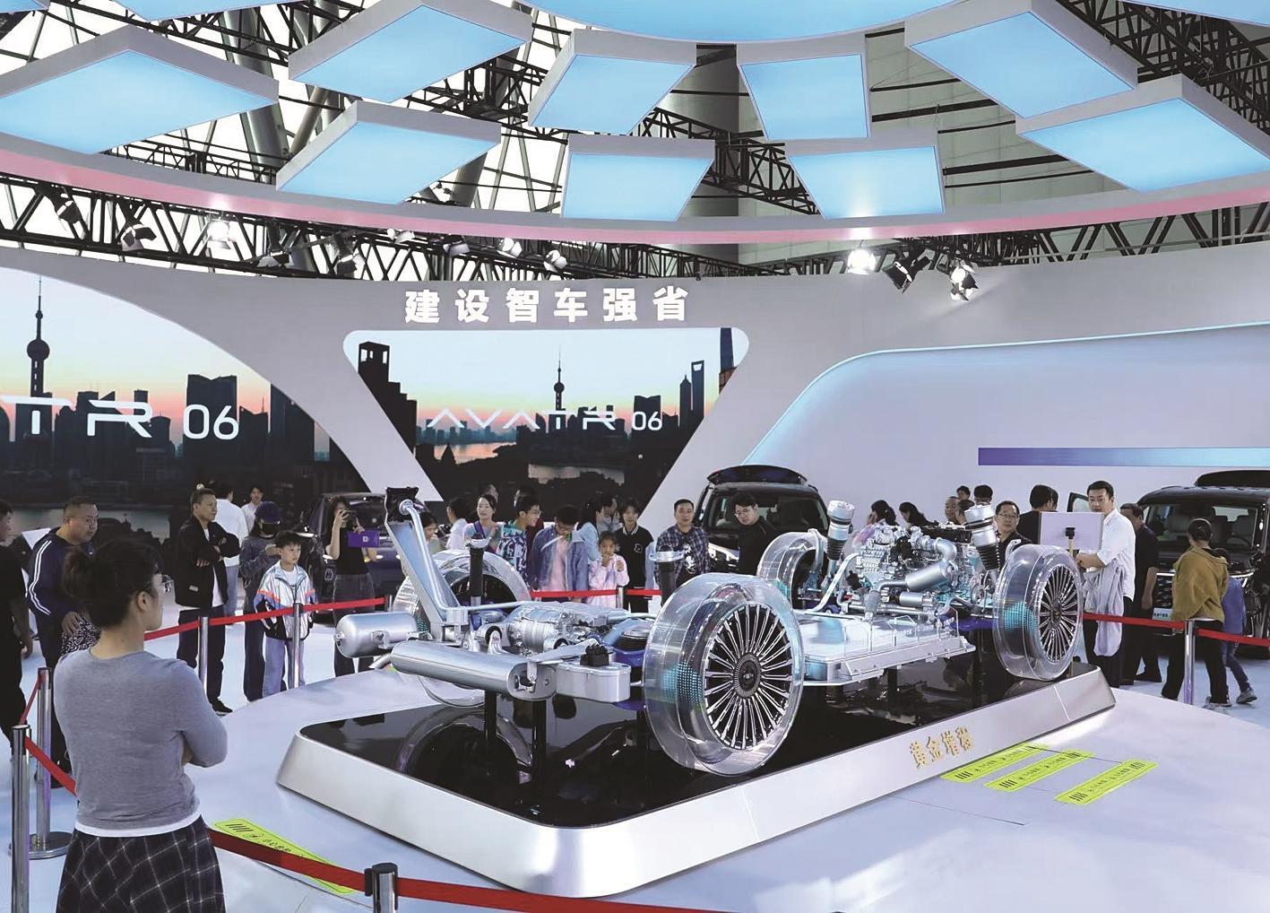 9月20日—23日,2025世界制造業(yè)大會(huì)在安徽合肥舉行,作為大會(huì)“重頭戲”的智能網(wǎng)聯(lián)新能源汽車(chē)展區(qū)以“整車(chē)+零部件+智能網(wǎng)聯(lián)”的形式,匯集了40多家重點(diǎn)企業(yè),展示安徽省汽車(chē)產(chǎn)業(yè)發(fā)展的最新成果。圖為奇瑞汽車(chē)展出的“黃金增程”系統(tǒng)架構(gòu)。國(guó)際商報(bào)記者 李波 攝