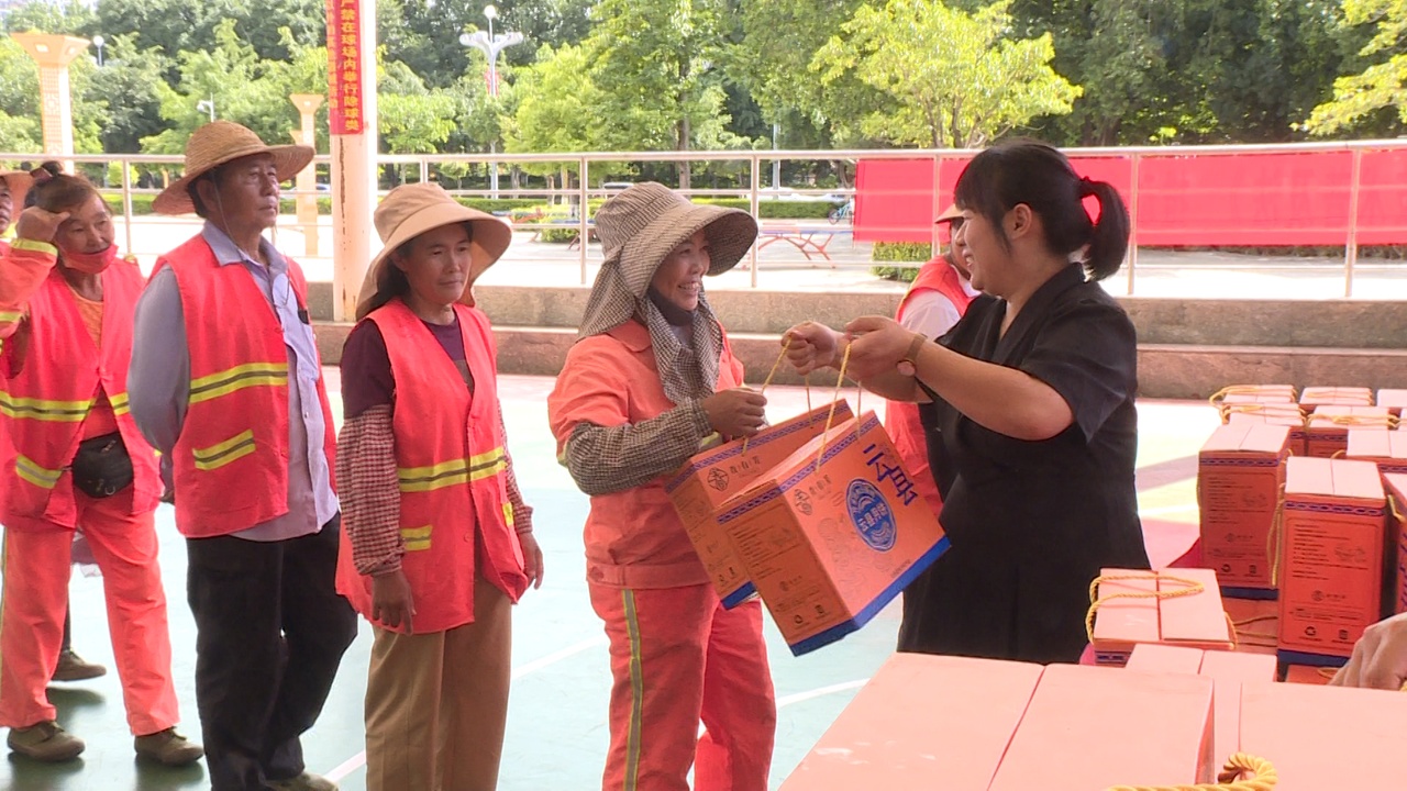 當(dāng)天下午,云縣風(fēng)雨球場(chǎng)熱鬧非凡,200箱包裝精美的月餅整齊擺放,空氣中飄著月餅的香甜。身著橙色工作服的環(huán)衛(wèi)工人陸續(xù)趕來(lái),他們的臉上帶著些許疲憊,卻在接過(guò)月餅禮盒時(shí),綻放出了質(zhì)樸又燦爛的笑容。工作人員與志愿者主動(dòng)上前,一邊為環(huán)衛(wèi)工人遞上禮盒,一邊輕聲道著“中秋快樂(lè)”,簡(jiǎn)單的舉動(dòng)與話語(yǔ),讓現(xiàn)場(chǎng)充滿(mǎn)了暖意。