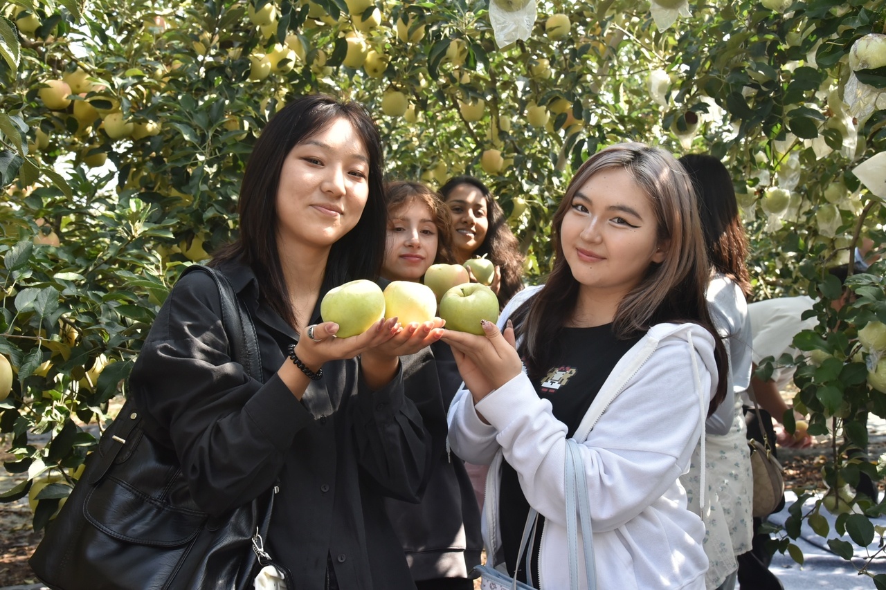 隊伍行至彩明采摘園門口,園主劉彩明正舉著剪刀等候?!敖衲暧晁悖犹鸬煤?!”他笑著掀開園門的竹簾,滿園果香撲面而來——紅彤彤的蘋果壓彎枝頭,黃澄澄的梨綴滿枝椏,紫瑩瑩的葡萄串垂在架下,陽光透過葉片灑在果實上,泛著誘人的光澤。來自青島市區(qū)的游客李巖牽著女兒的手,迫不及待拿起竹籃:“早就聽說洋河的水果新鮮,今天終于能自己摘了!”小姑娘踮著腳夠到一顆小蘋果,擦了擦就咬下一口,甜汁順著嘴角流下,她瞇著眼睛喊:“媽媽,比超市買的甜多啦!”
