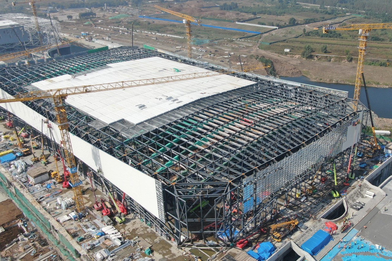 沈陽王家灣冰上運(yùn)動中心主要包括冰上綜合館、速滑館、媒體中心3座冬季運(yùn)動場館,總建筑面積約26.38萬平方米。其中,速滑館為最大單體建筑,建筑面積約13.57萬平方米,高約39.5米,整體以“長方體”為母形,按甲級體育場館設(shè)計(jì)建造,滿足舉辦全國性和單項(xiàng)國際比賽要求,打造出渾河邊上極具代表性的新地標(biāo)。