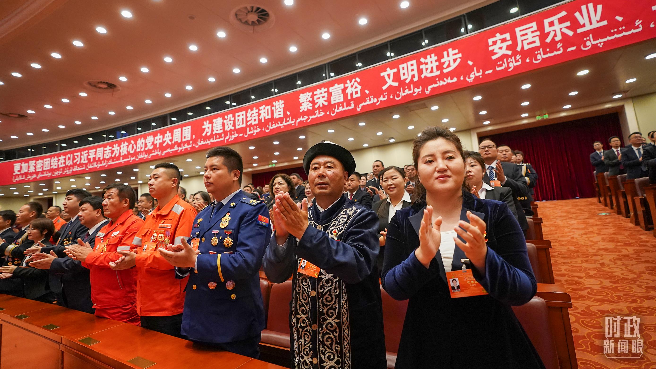 《時政新聞眼》注意到,出席當天大會的除了黨和國家領導人、新疆各族各界干部群眾代表,還有國家勛章和國家榮譽稱號、“七一勛章”“八一勛章”獲得者和先進模范代表等。他們既是新疆的建設者,也是新疆發(fā)展的見證者。