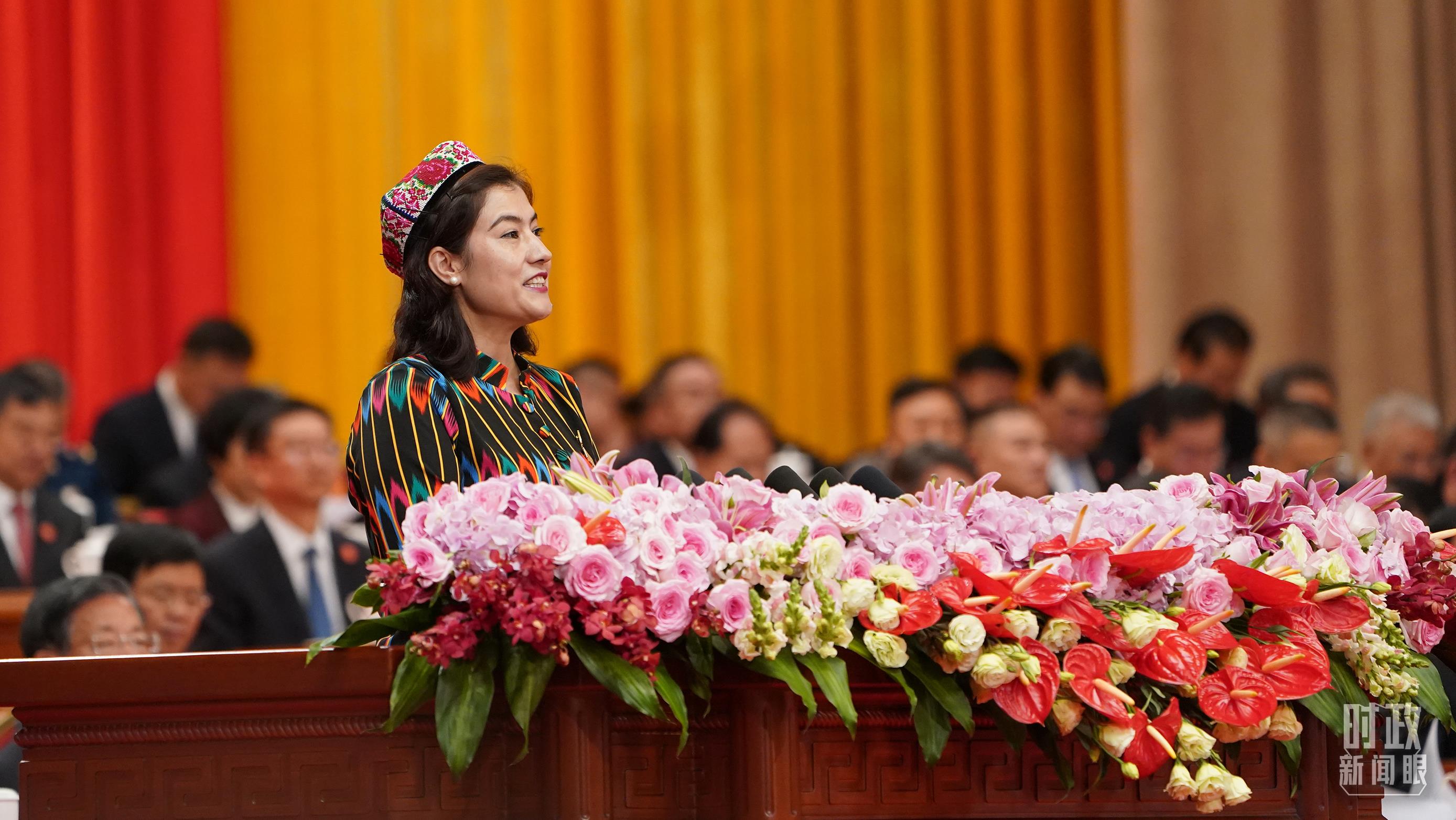 喀什地區(qū)巴楚縣童夢幼兒園園長艾米拉古麗·阿不都作為維吾爾族群眾代表發(fā)言。她曾見證了自己所在的幼兒園由低矮的土坯房變成標準化幼兒園,成為鄉(xiāng)村最漂亮的建筑。