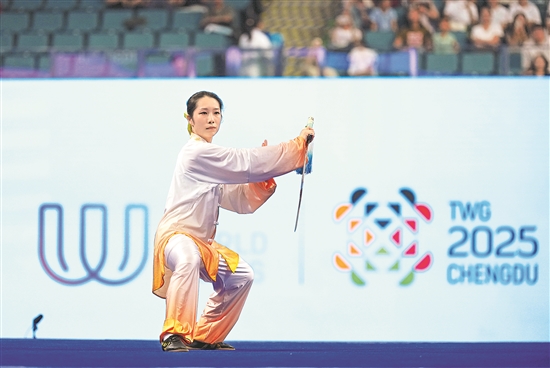 當(dāng)日,在成都高新體育中心綜合館內(nèi)舉行的成都世運(yùn)會(huì)武術(shù)項(xiàng)目女子太極拳-太極劍決賽中,中國(guó)隊(duì)選手盧卓靈以總分19.522優(yōu)異成績(jī)奪得冠軍。這是中國(guó)體育代表團(tuán)在成都世運(yùn)會(huì)上的首枚金牌。