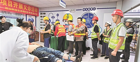 中鐵建工華南有限公司粵東分公司深汕科技生態(tài)園 B 區(qū)項目,每月雷打不動開展免費義診活動,至今已持續(xù) 24 個月?;顒悠陂g,醫(yī)護人員為一線產業(yè)工人量血壓、做心臟檢查,提供疾病預防講解與咨詢。以實際行動守護職工健康,彰顯央企擔當。時冉冉 攝