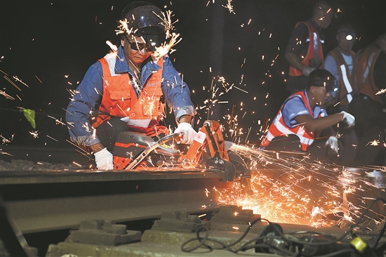暑運(yùn)期間旅客列車數(shù)量的增長,給線路設(shè)備帶來不小考驗(yàn)。大秦鐵路股份有限公司太原南工務(wù)段強(qiáng)化巡檢,及時(shí)發(fā)現(xiàn)道岔軌件安全隱患,迅速集結(jié)精兵強(qiáng)將,利用夜間天窗時(shí)間實(shí)施更換,確保線路安全。本報(bào)通訊員 崔明明 攝